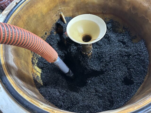 排出完了したら新しいろ材を充填します。