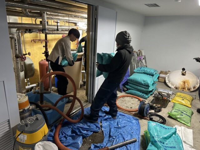 浴場ろ過器ろ材交換(ショウエイ製2基)