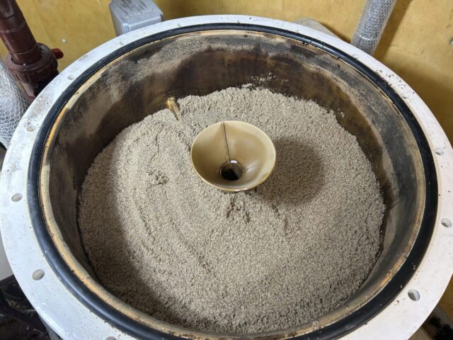 今回は一般的なろ過用硅砂を充填しました。