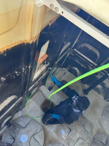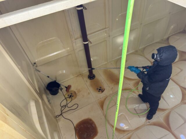 高圧洗浄で仕上げ・・・もちろん通常工程の塩素消毒も実施しますが薬品をしっかり
